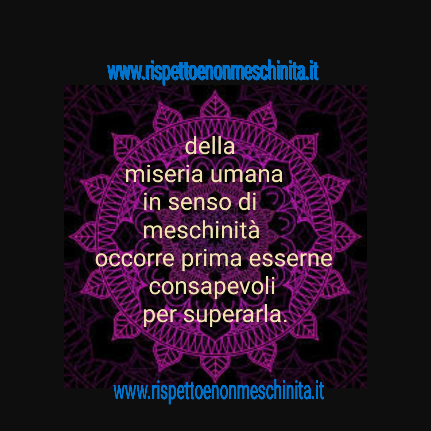 Le meschinità rappresentate dalle innumerevoli miserie umane, si concretizzano con la cattiveria, l'odio, l'egoismo, gli arrivismi, la falsa correttezza, il tornacontismo generale e personale e di parte, a scapito di ogni tipo di rapporto interpersonale autentico, usando le persone come spazzatura e/o merce di scambio.